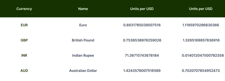 Instantly see accurate, up-to-date exchange rates powered by live global market data.